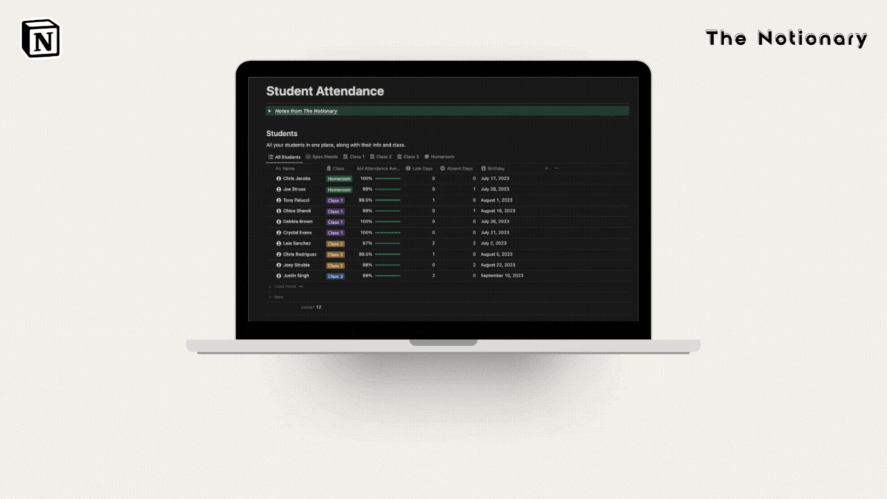 Welcome to the Student Attendance Notion Template: Your Ultimate Classroom Organizer!