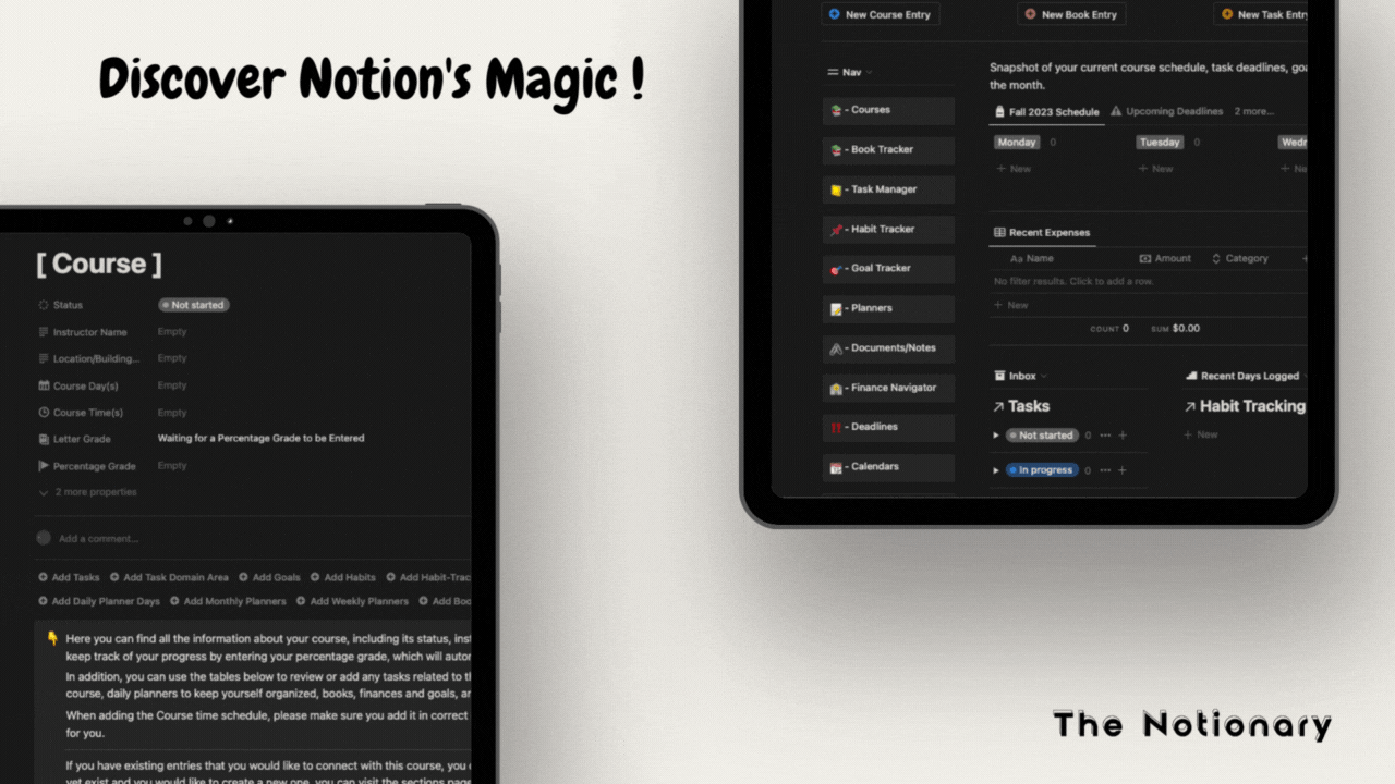 Struggling to stay on top of classes, assignments, exams and more? Say goodbye to academic chaos and meet Notionary - your new study buddy designed to help you organize, achieve and unlock your full potential!